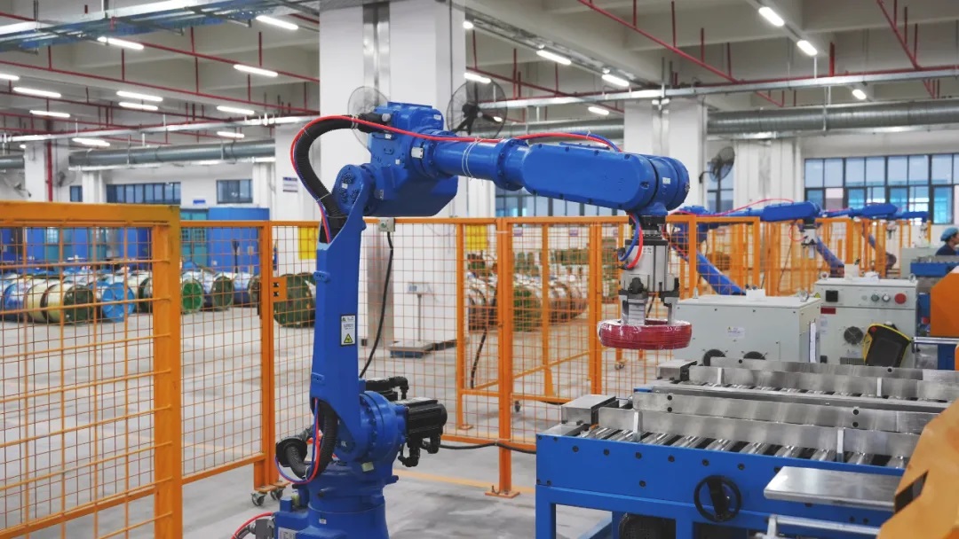 一個(gè)個(gè)機(jī)械臂旋轉(zhuǎn)揮舞,一道道指令遠(yuǎn)程控制產(chǎn)線運(yùn)行······在金環(huán)宇電纜智能制造車(chē)間,生動(dòng)的數(shù)字化應(yīng)用場(chǎng)景正每日上演,綠色和高效貫穿于生產(chǎn)的每一個(gè)環(huán)節(jié)。