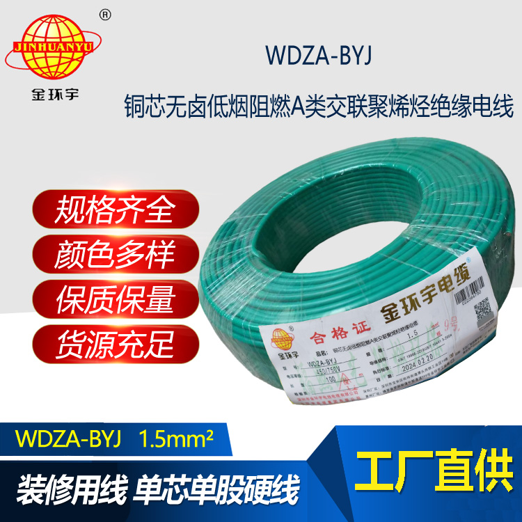 金環(huán)宇電線 WDZA-BYJ 1.5平方低煙無鹵阻燃電線 家用電線