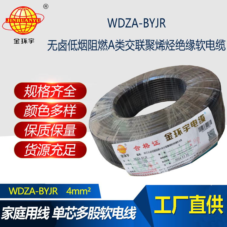 金環(huán)宇電線 低煙無鹵型阻燃電線WDZA-BYJR 4平方bvr單芯電線