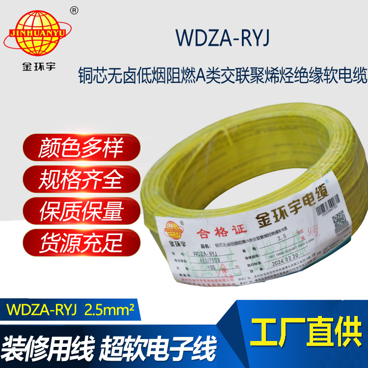 金環(huán)宇電線 2.5平方rv電線 WDZA-RYJ 2.5平方 低煙無鹵電線電纜
