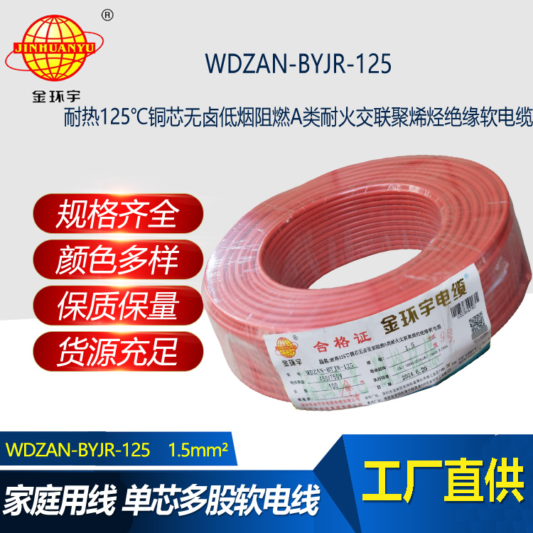 這款WDZAN-BYJR-125低煙無鹵電線采用銅芯耐熱材料,耐熱達125℃,具有A類耐火、阻燃性能,采用低煙無鹵材料,在火災中煙霧極少。其優(yōu)良的阻燃耐火性能,確保在關(guān)鍵時刻可靠使用。穩(wěn)定...