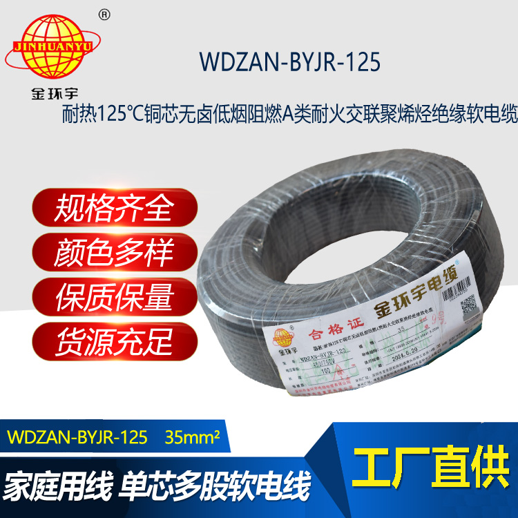 金環(huán)宇電線電纜 深圳WDZAN-BYJR-125低煙無鹵阻燃耐火電線 35平方家用布電線