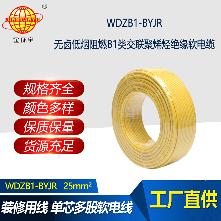 金環(huán)宇電線電纜 WDZB1-BYJR 25平方軟芯電線 低煙無鹵B1級(jí)阻燃電線