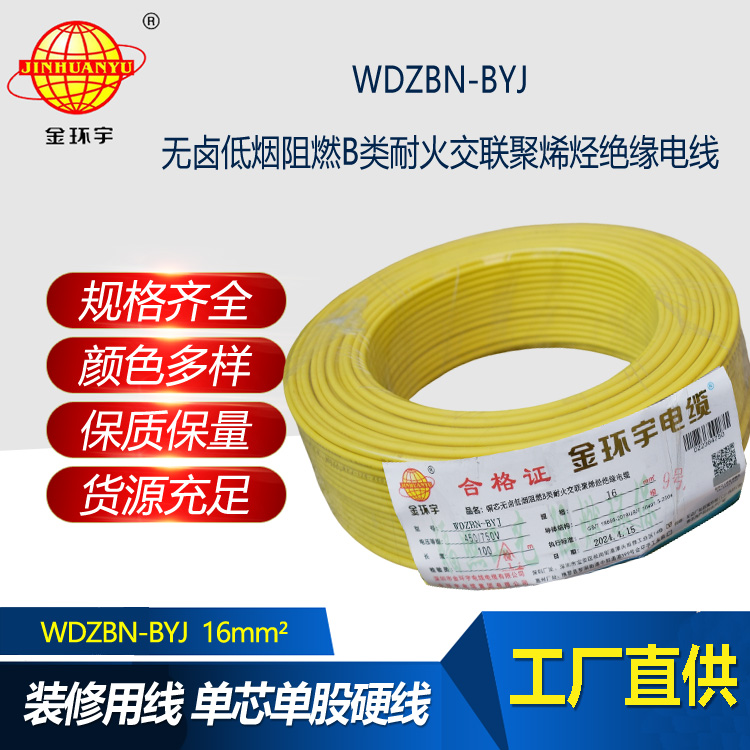 金環(huán)宇電線電纜 WDZBN-BYJ 16平方低煙無(wú)鹵阻燃耐火電線 家裝線