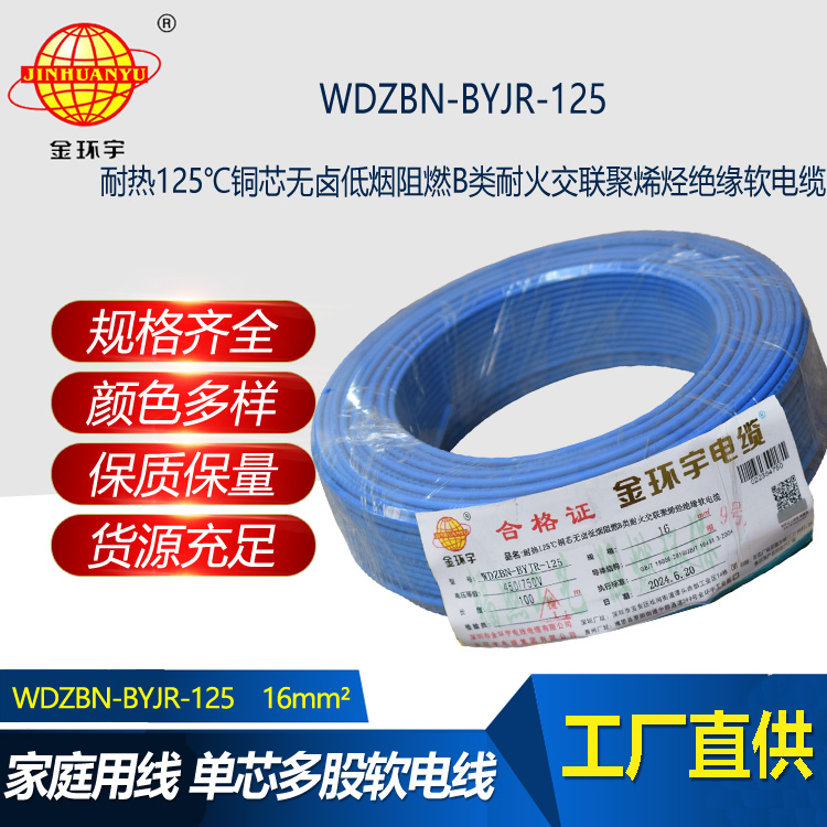金環(huán)宇電線電纜 家用電線16平方WDZBN-BYJR-125低煙無(wú)鹵b類(lèi)阻燃耐火軟線