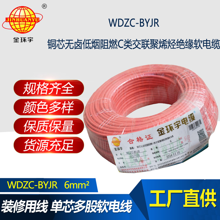 WDZC-BYJR指低煙無鹵阻燃聚烯烴護套,交聯(lián)聚乙烯絕緣軟電線。WDZC分別是無鹵、低煙、阻燃、聚烯烴,B指電線,YJ是交聯(lián)聚乙烯絕緣,R是軟。