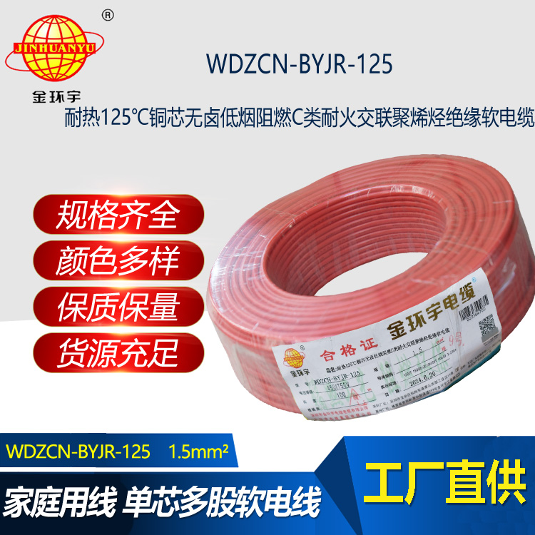 這里向您推薦WDZCN-BYJR-125低煙無鹵電線,這款產(chǎn)品采用銅芯耐熱材料,耐受高達125℃的溫度,是一款C類耐火交聯(lián)聚烯烴絕緣軟電線。其無鹵低煙特性使其在燃燒時產(chǎn)生的煙霧較少,符合...