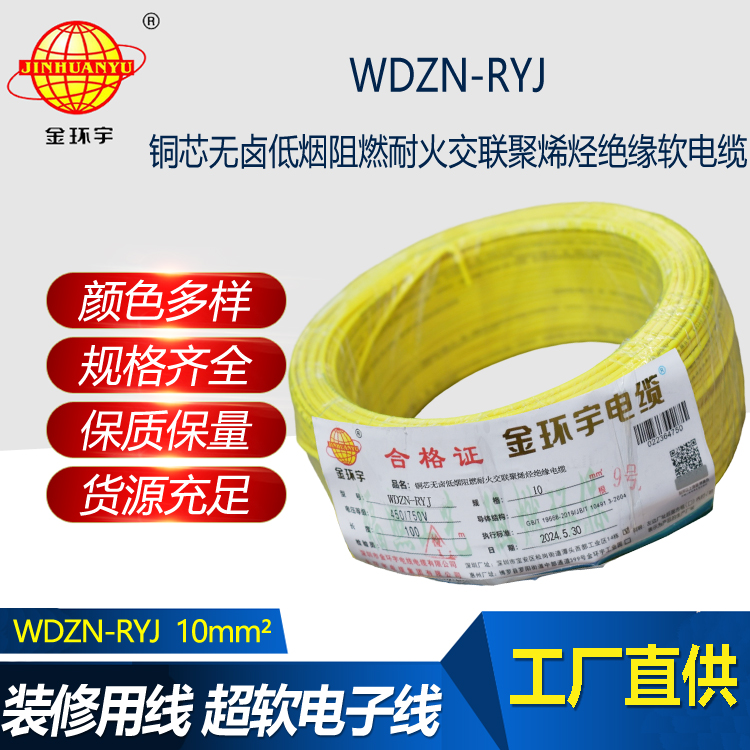 金環(huán)宇電線電纜 耐火電線 低煙無鹵電線 WDZN-RYJ 10平方 rv電線