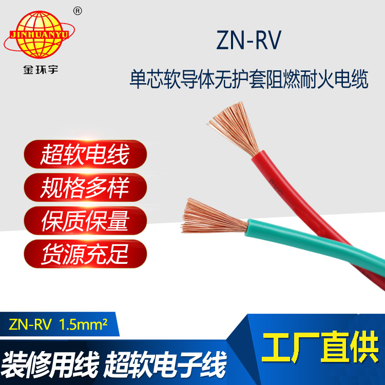 金環(huán)宇電線 ZN-RV 1.5平方 耐火電線 軟銅芯線 深圳阻燃電線