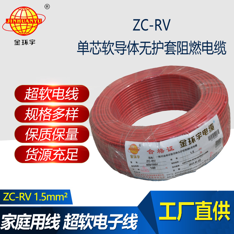 金環(huán)宇電線 阻燃超軟線ZC-RV 1.5家裝照明銅芯電線