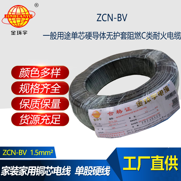 金環(huán)宇電線電纜ZCN-BV 1.5平方 bv聚氯乙烯絕緣電線 深圳bv電線廠